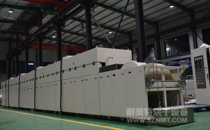 2、外形尺寸(約):總長(zhǎng)16500*高2000*寬1230mm;進(jìn)料部分長(zhǎng)2000mm,烘干部分長(zhǎng)12000mm,分為4段,每段3000mm,出料部分1000mm;輸送帶離地高1400±20mm;